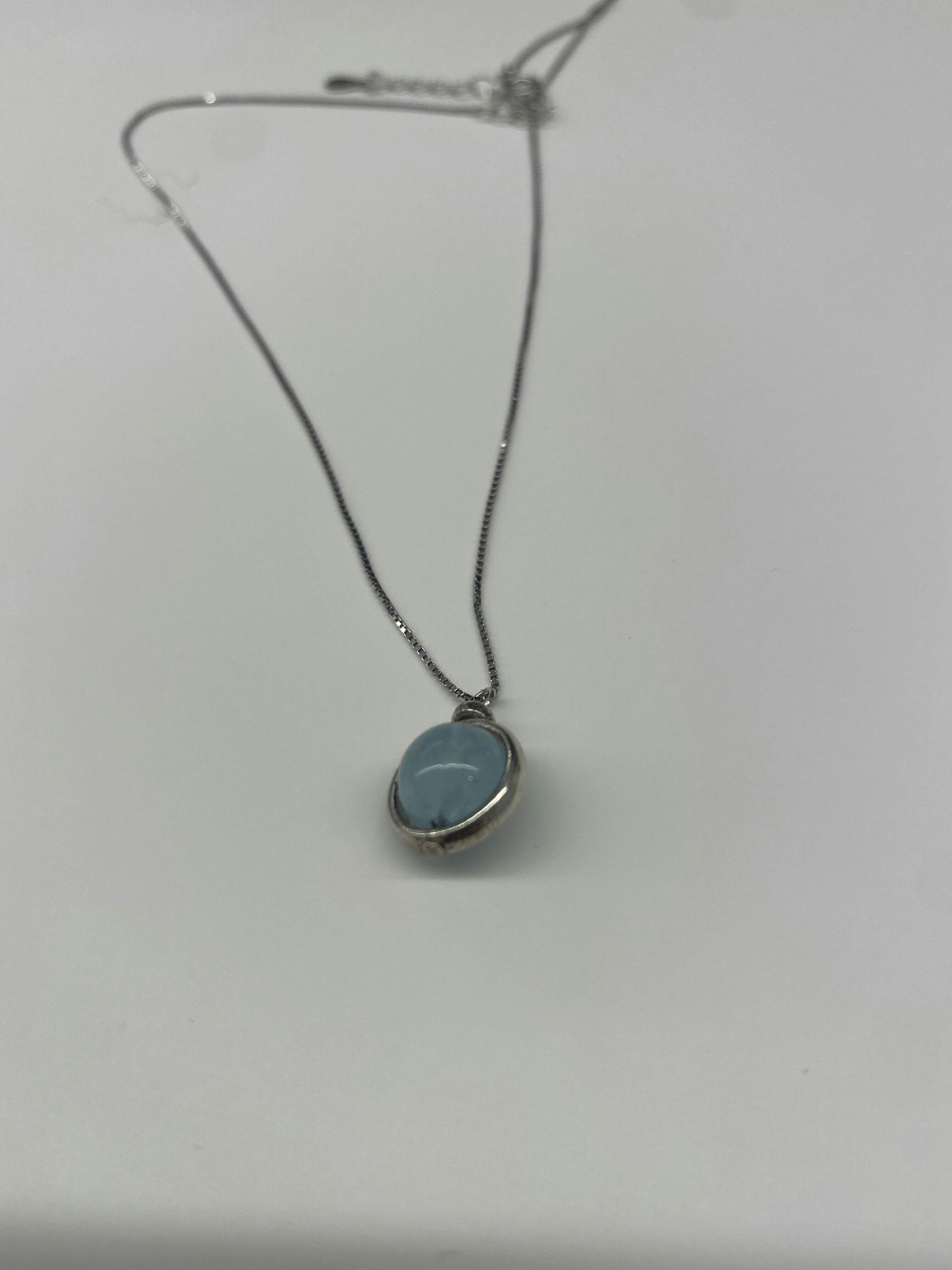 Ontdek de kracht en schoonheid van aquamarijn met deze subtiele zilveren ketting om je hals. Deze minimalistische edelsteen hanger staat symbool voor de rustgevende energie van water.