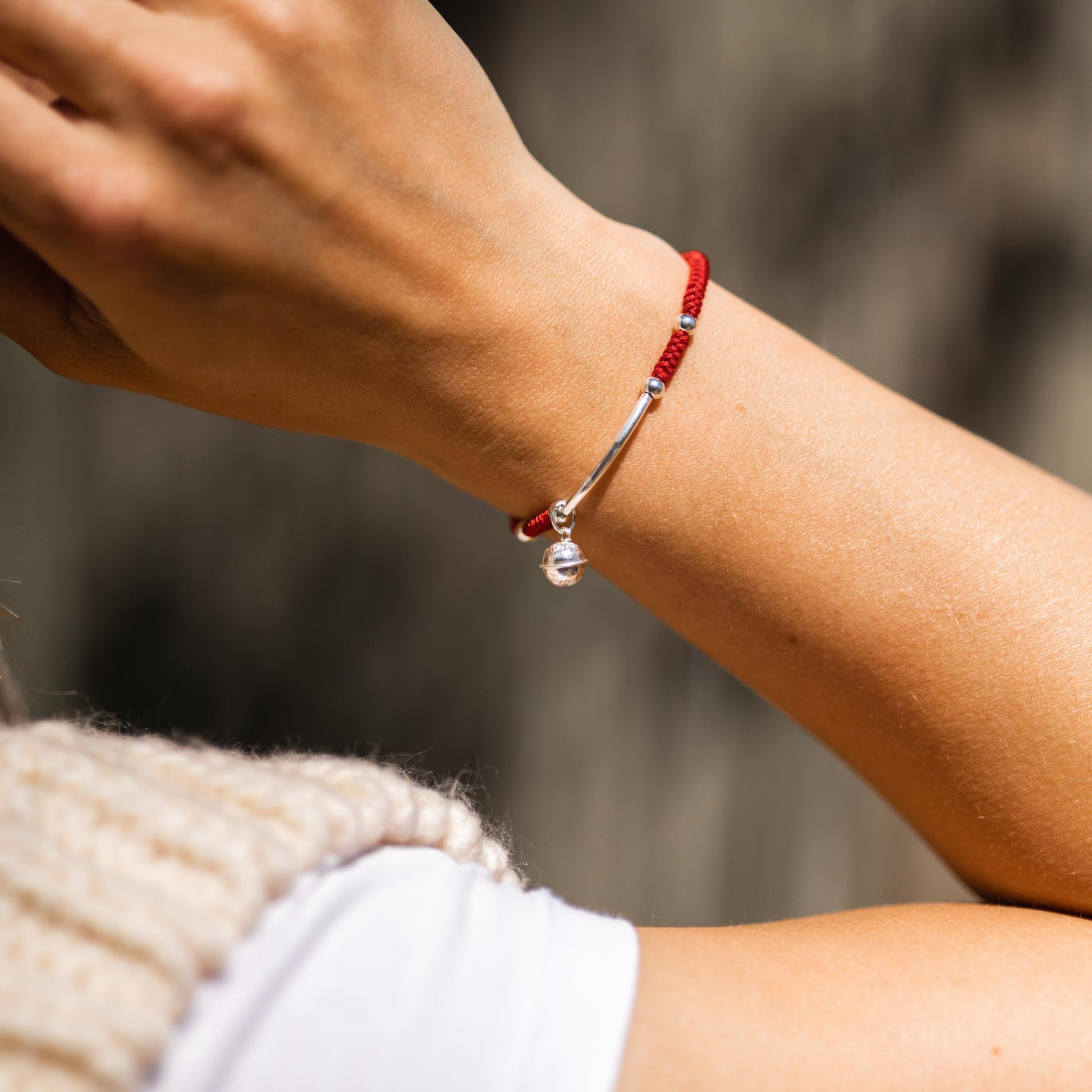 Het handgemaakte rode koordje wordt zorgvuldig gevlochten en zou geluk brengen aan de drager. De drager dient het armbandje om de linker pols te dragen (de ontvangende zijde) om geluk en positieve aantrekkingskracht te stimuleren.