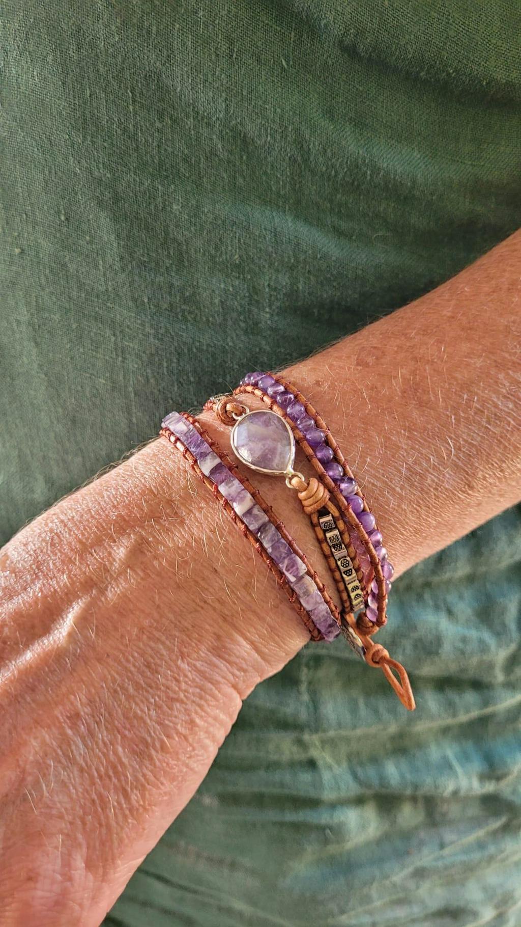 Wikkelarmband Amethist - Violet - Levensboom - Leer