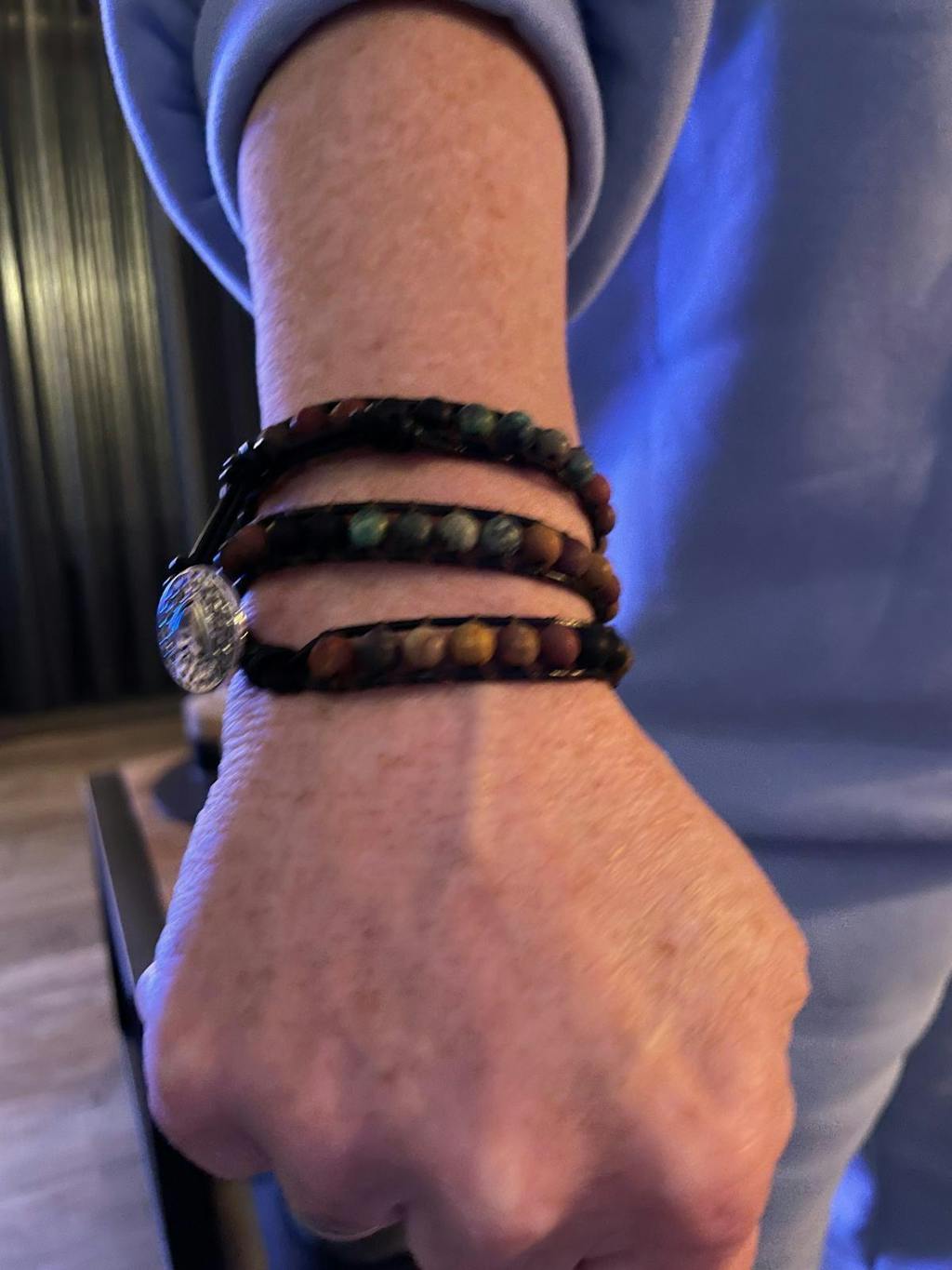 Wikkelarmband Balans - Afrikaans Turkoois & Jaspis - Leer - Liefde